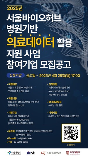 서울바이오허브, 스타트업 의료데이터 활용 지원...참여기업 모집
