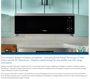 美 월풀, '삼성·LG·中' ITC 제소…"특허침해, 전자레인지 수입·판매 차단해야"