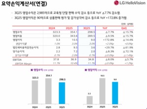 LG헬로비전, "방송·통신 어려움 지속"…3분기 영업익 90억원