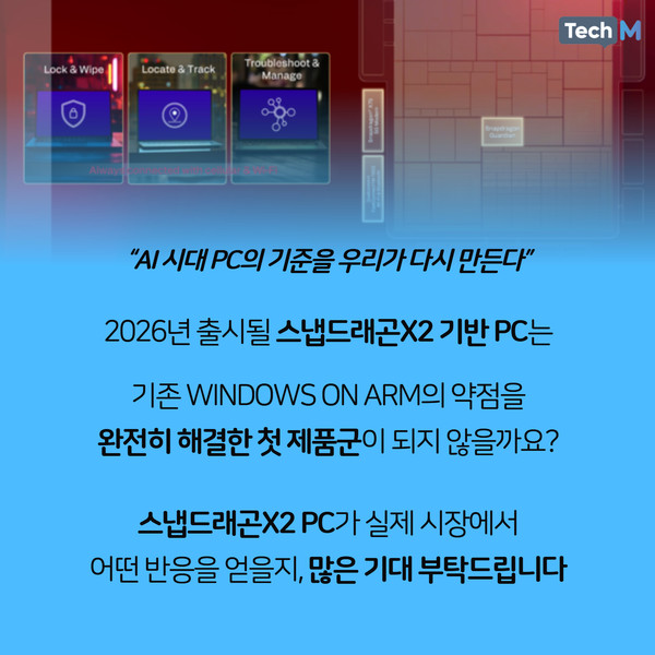 퀄컴이 PC 공략을 강화했다. 지난 9월 PC 시스템온칩(SoC) 신제품 '스냅드래곤X2 엘리트 익스트림'과 '스냅드래곤X2 엘리트'를 발표했다. 2026년 상반기 내장 PC 출시 예정이다. 스냅드래곤X 제품은을 ▲익스트림 ▲엘리트 ▲플러스 ▲기본 4종으로 늘렸다.